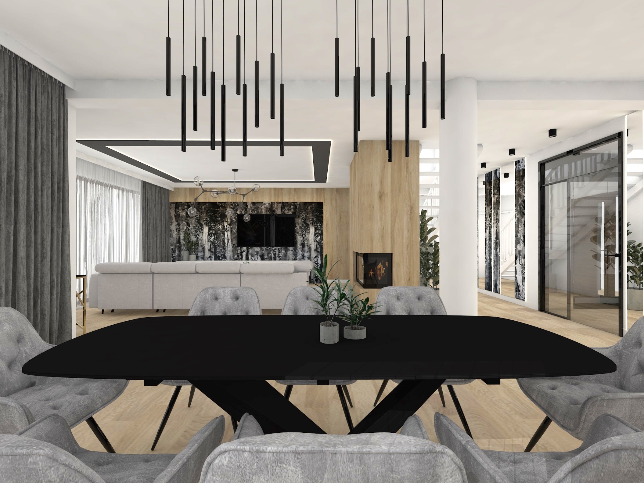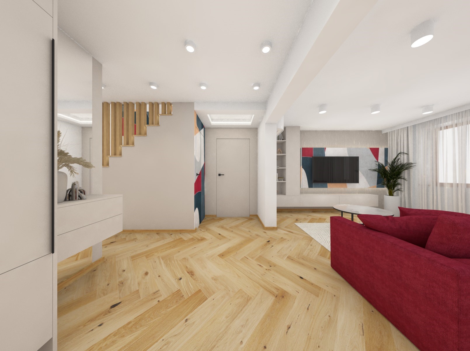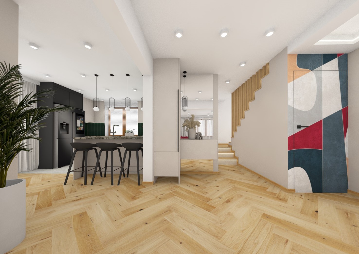 Projekt strefy dziennej oraz korytarza na piętrze