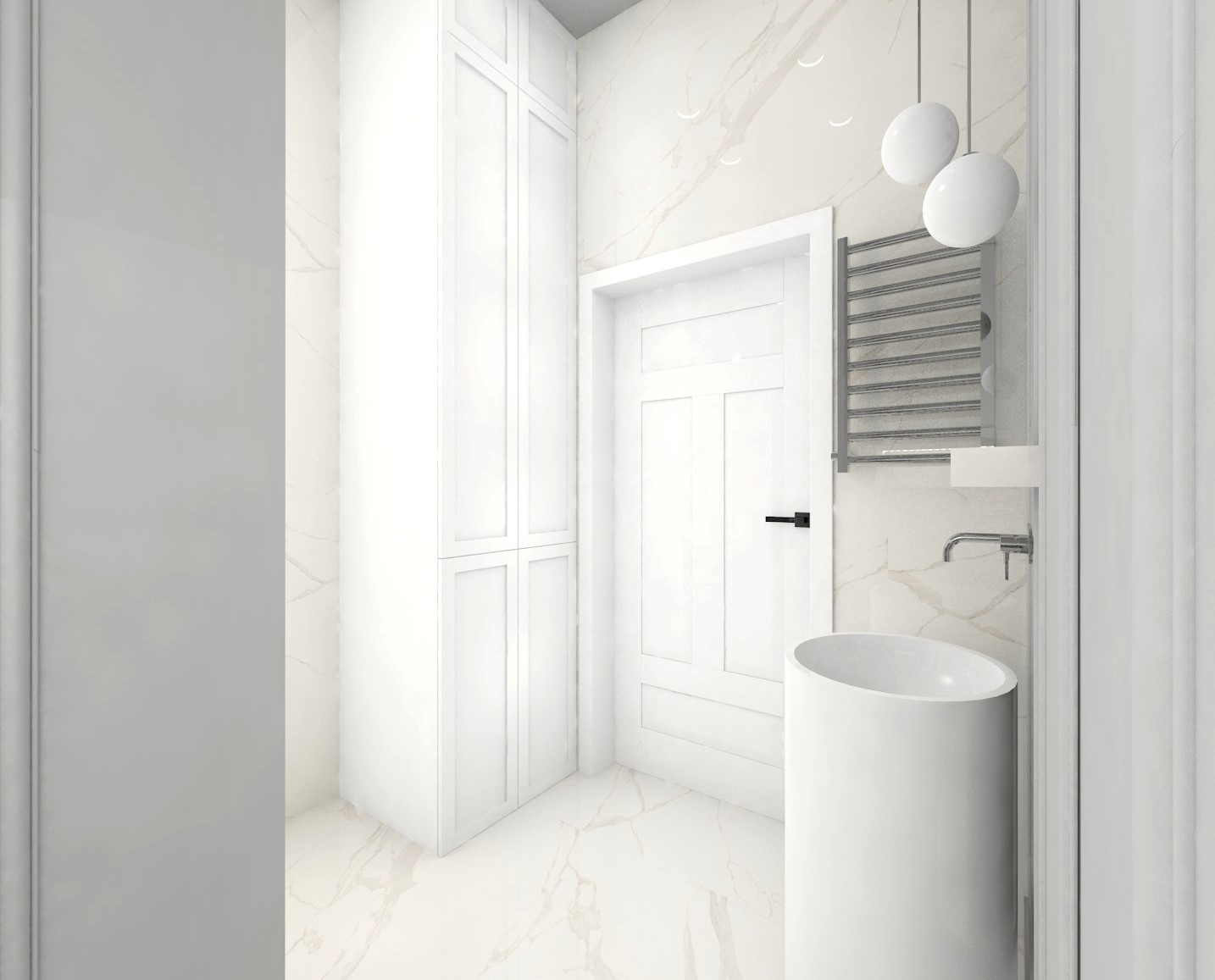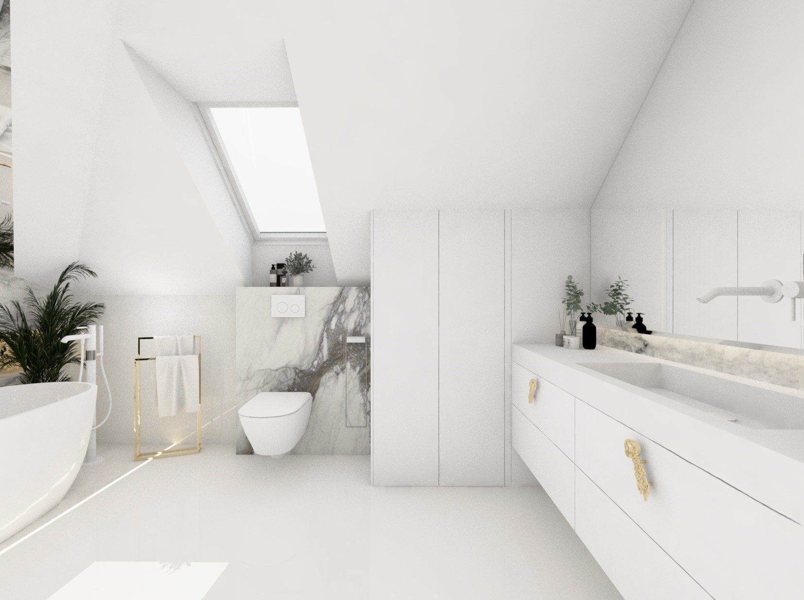 Projekt głównej łazienki gdzie biel gra główną rolę