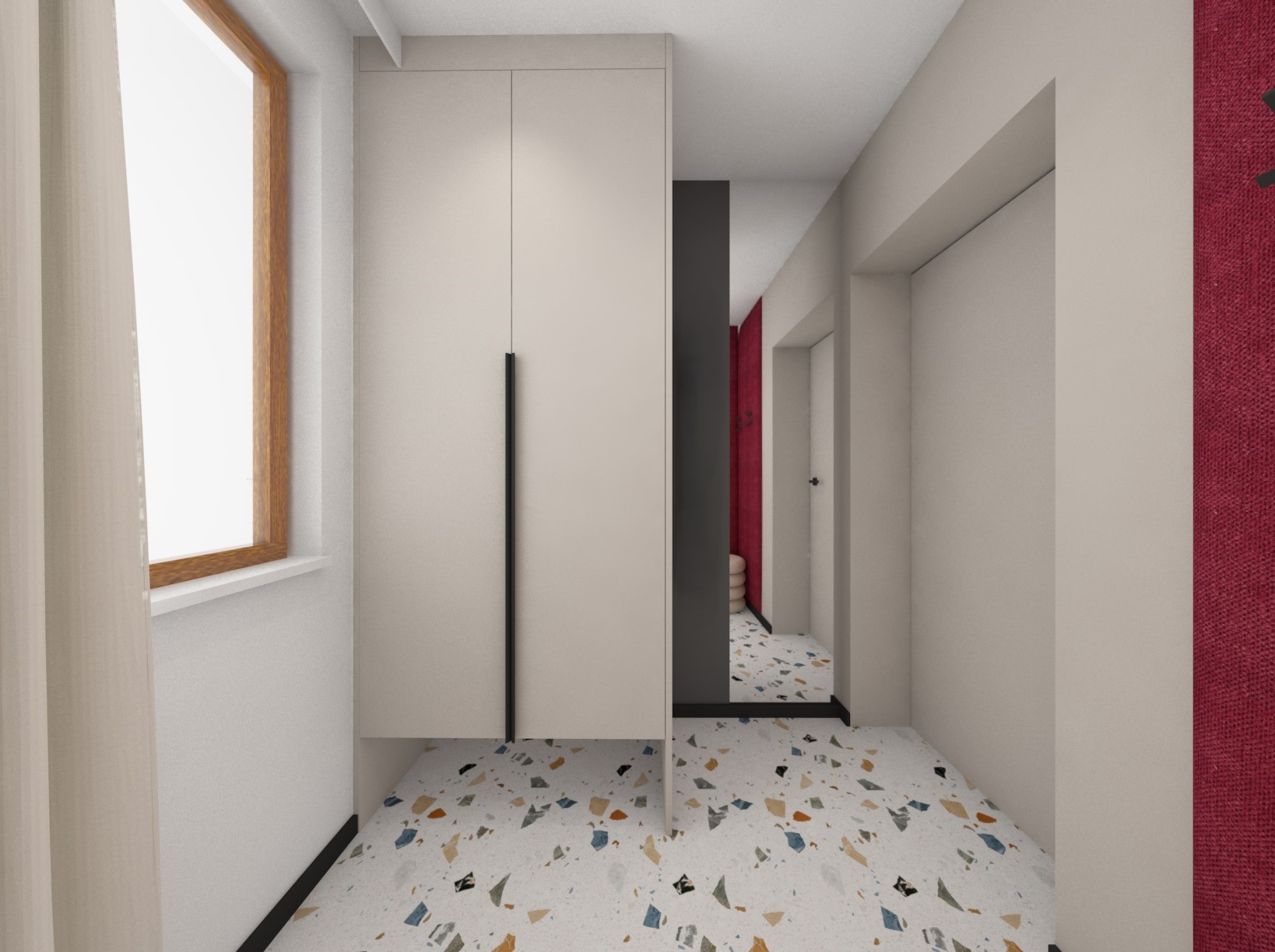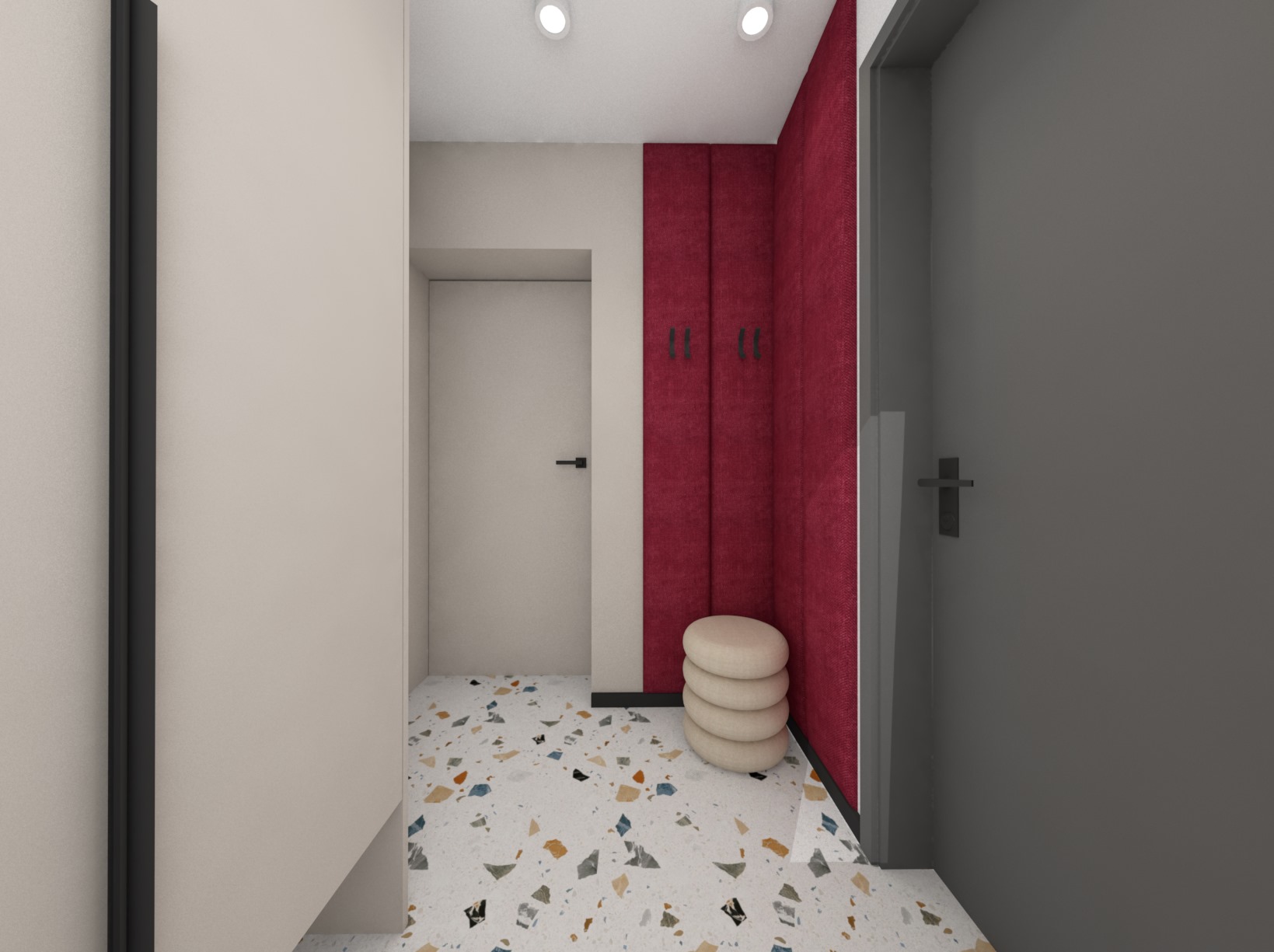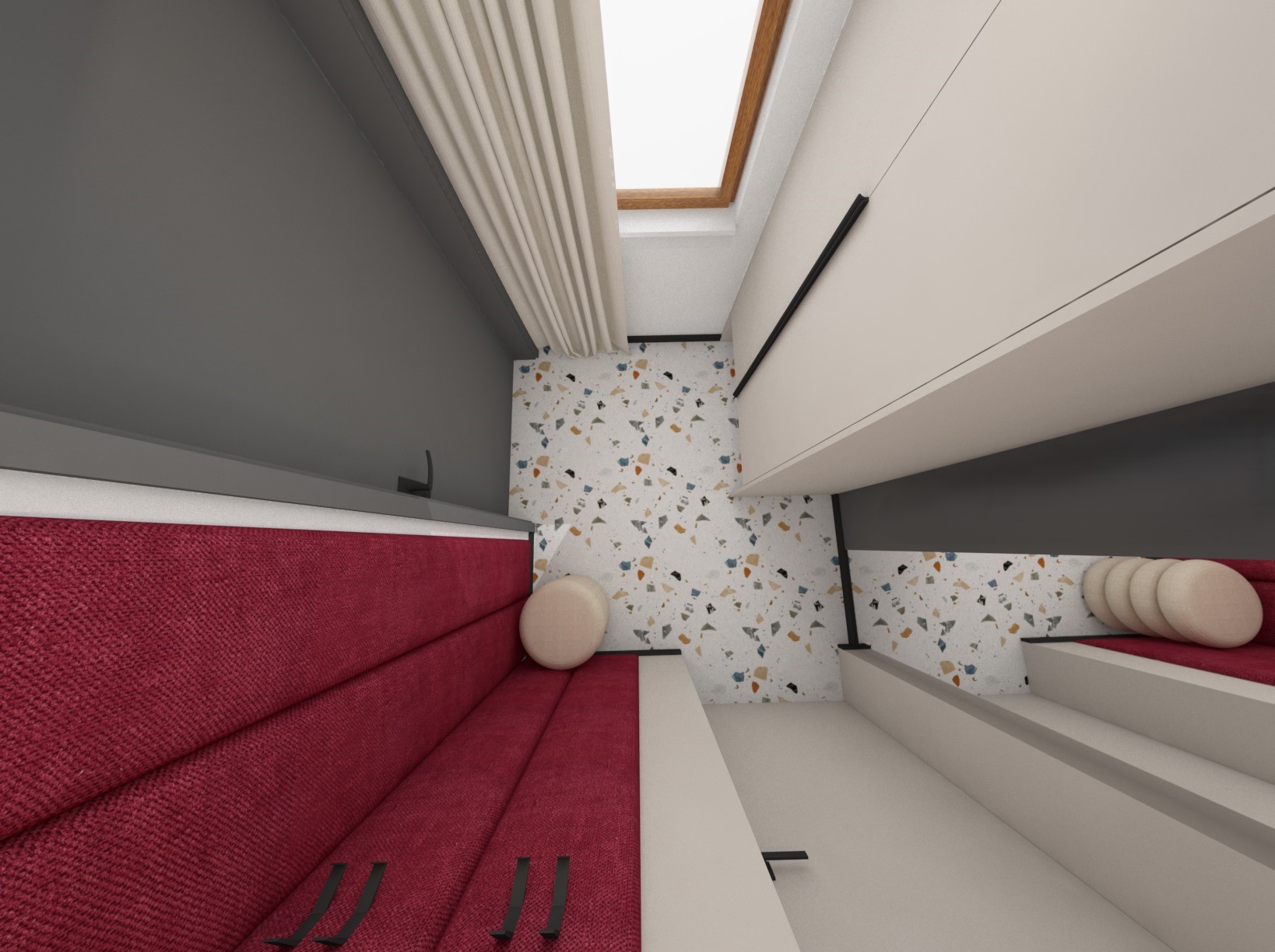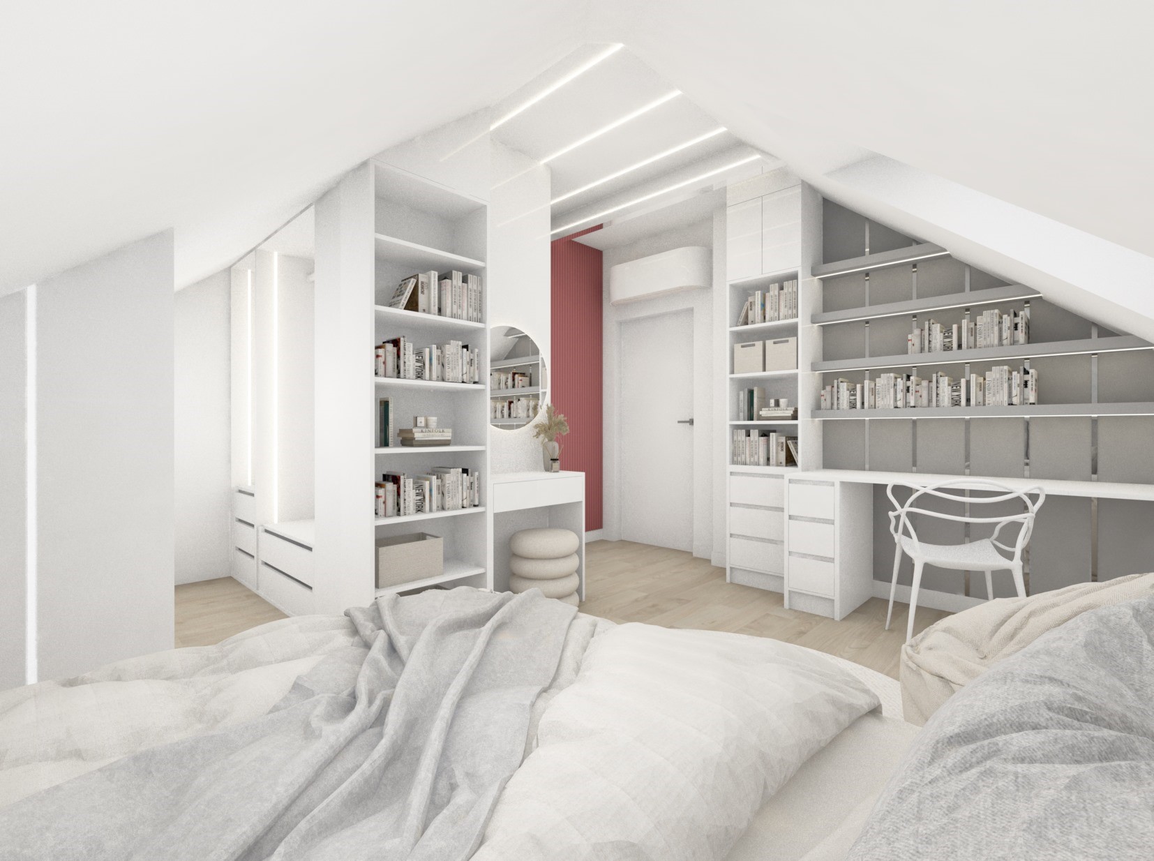 Druga wersja pokoju dla nastolatki, tym razem dodatki srebra i przygaszonej czerwieni