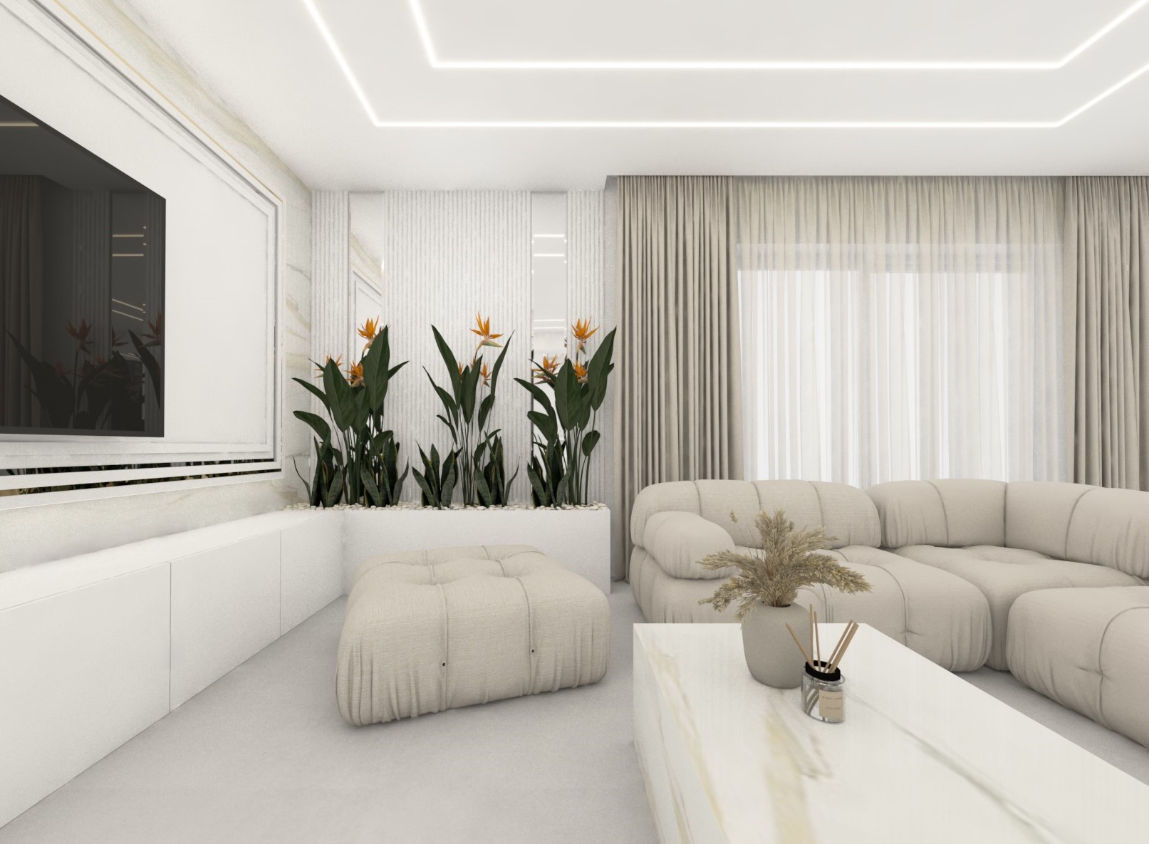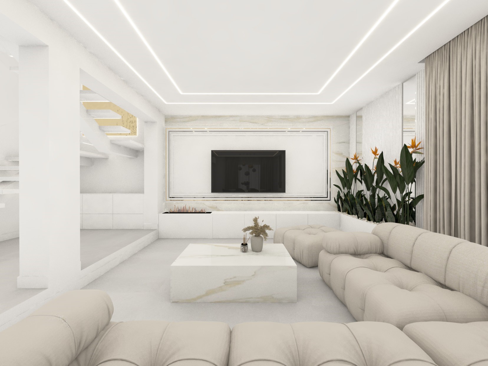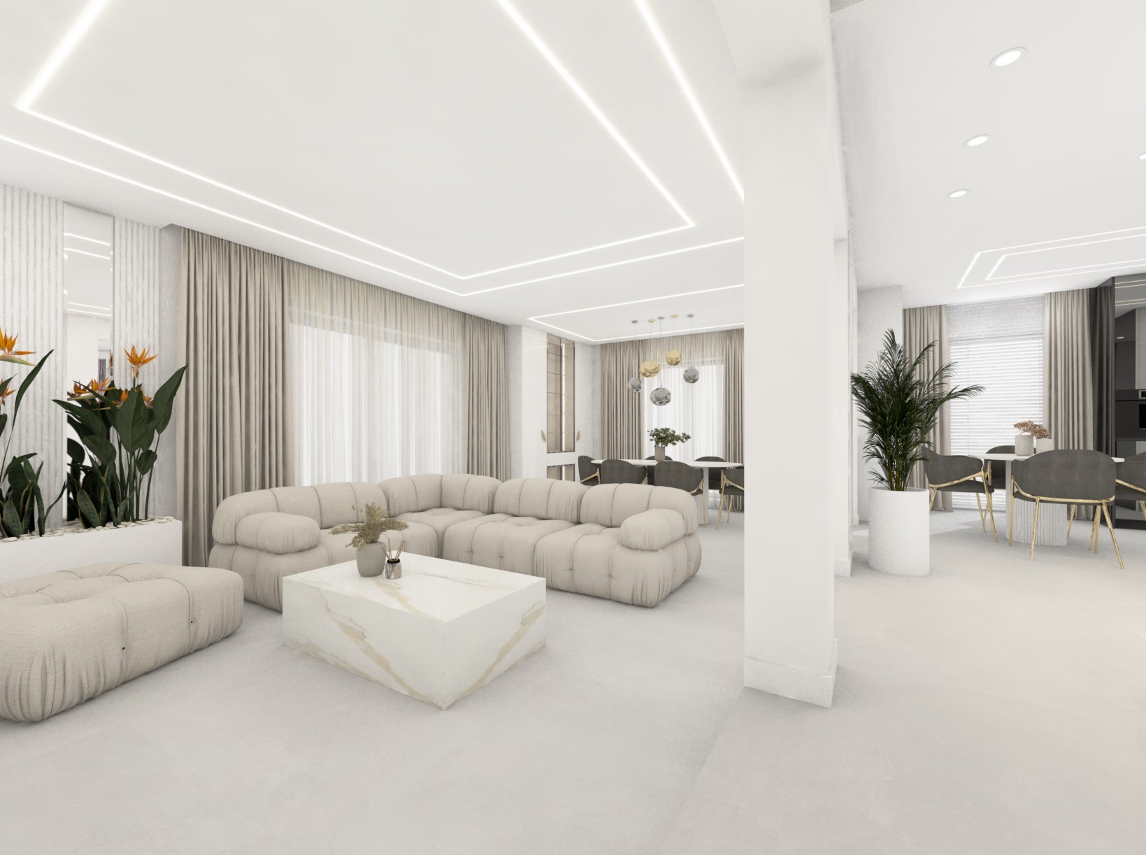 Projekt przestrzenni dziennej w beżach z dodatkiem złota