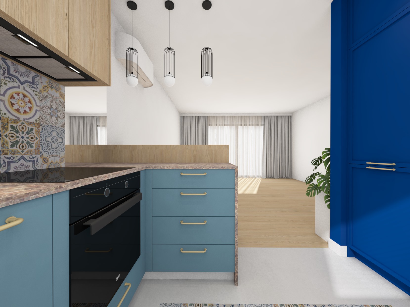 Druga wersja kuchni, tym razem granat dopełnia przestrzeń