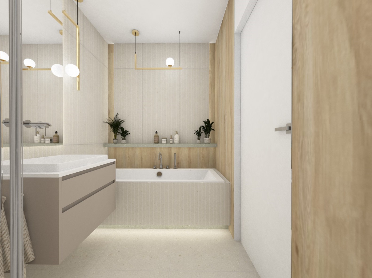 Ponadczasowa łazienka w beżach z dodatkiem złota