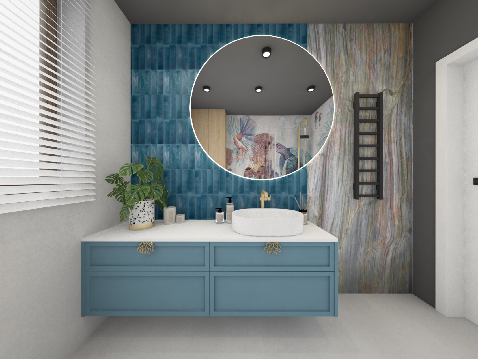 Projekt odważnej i morskiej łazienki