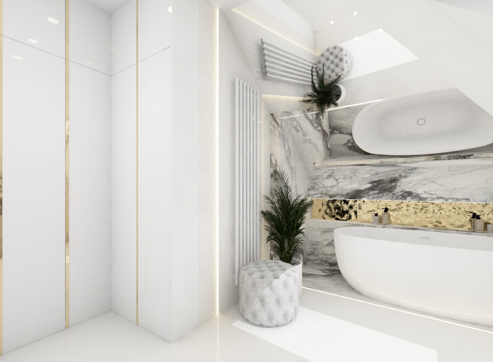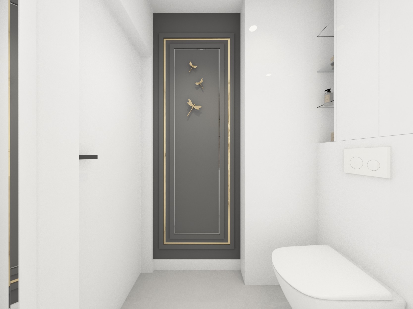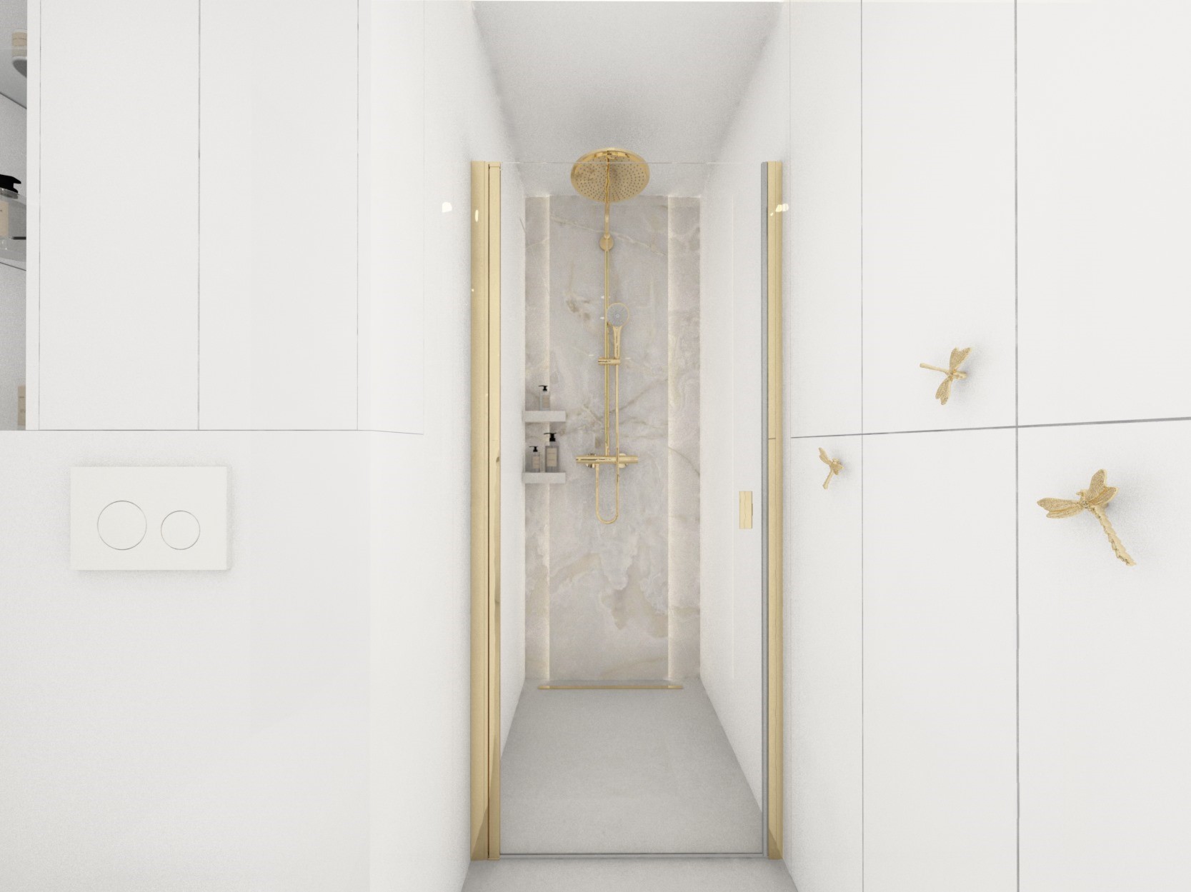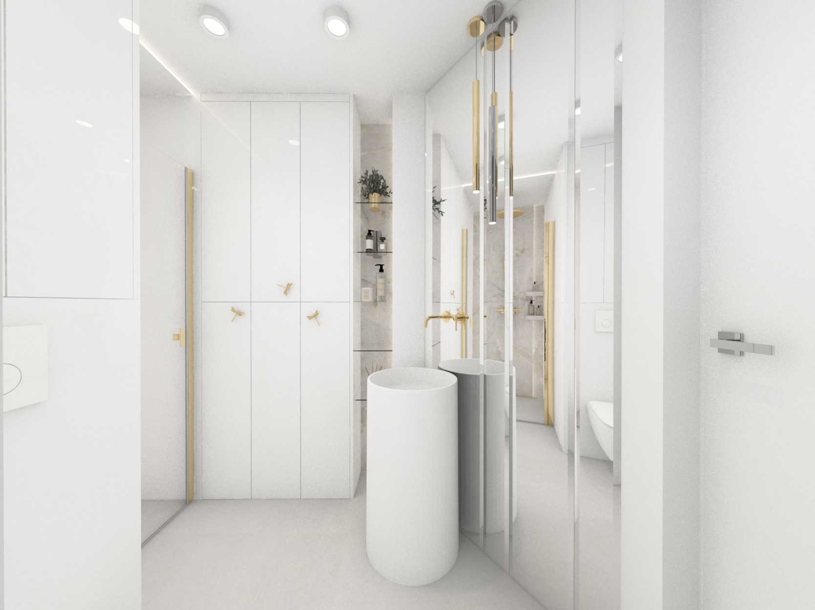 Projekt mniejszej łazienki z dodatkiem złota i srebra