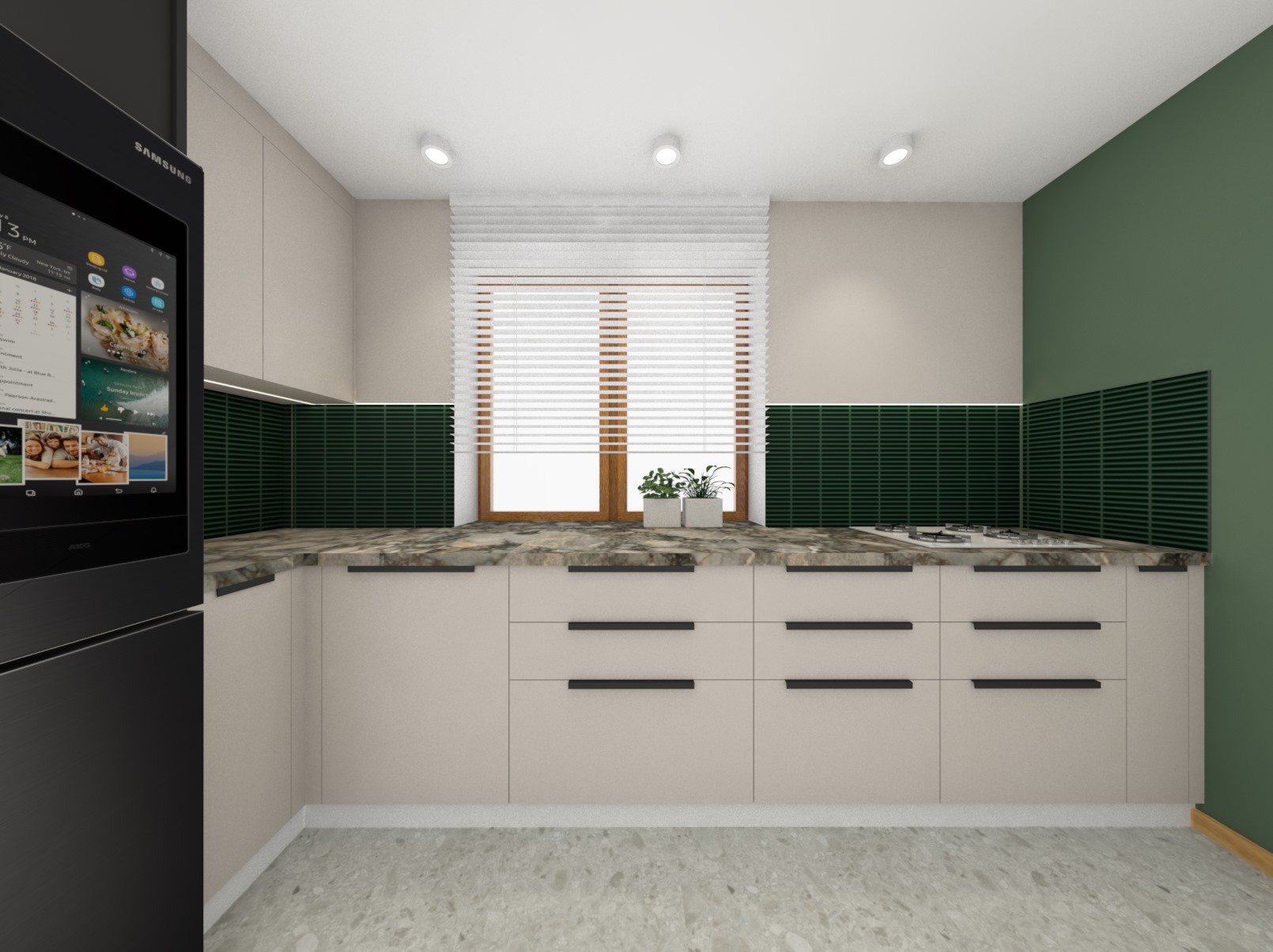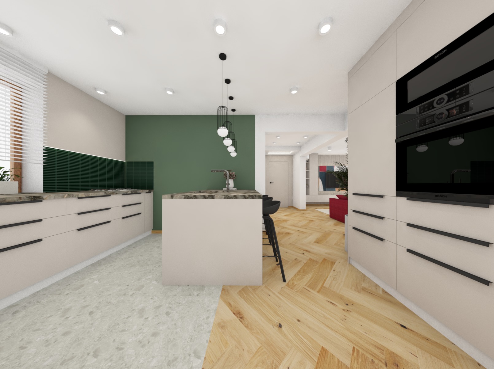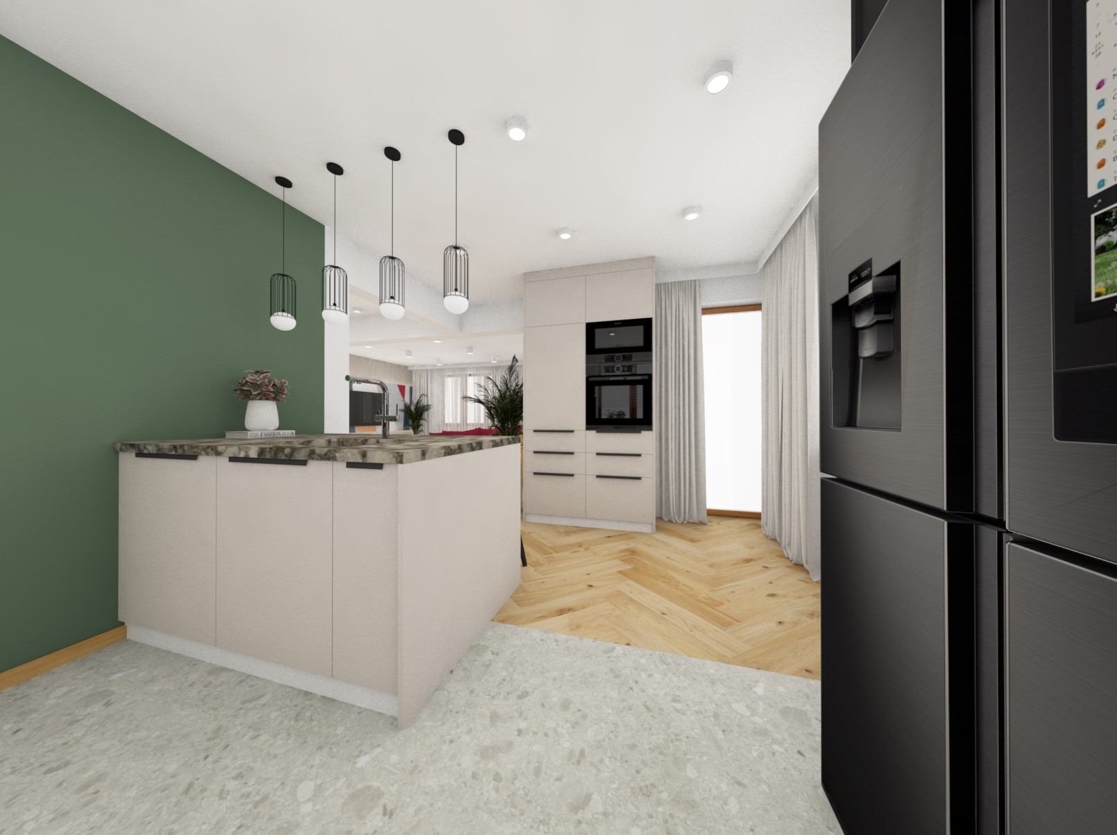 Pierwsza wersja kuchni gdzie czerń gra główną rolę a dodatkiem jest zieleń