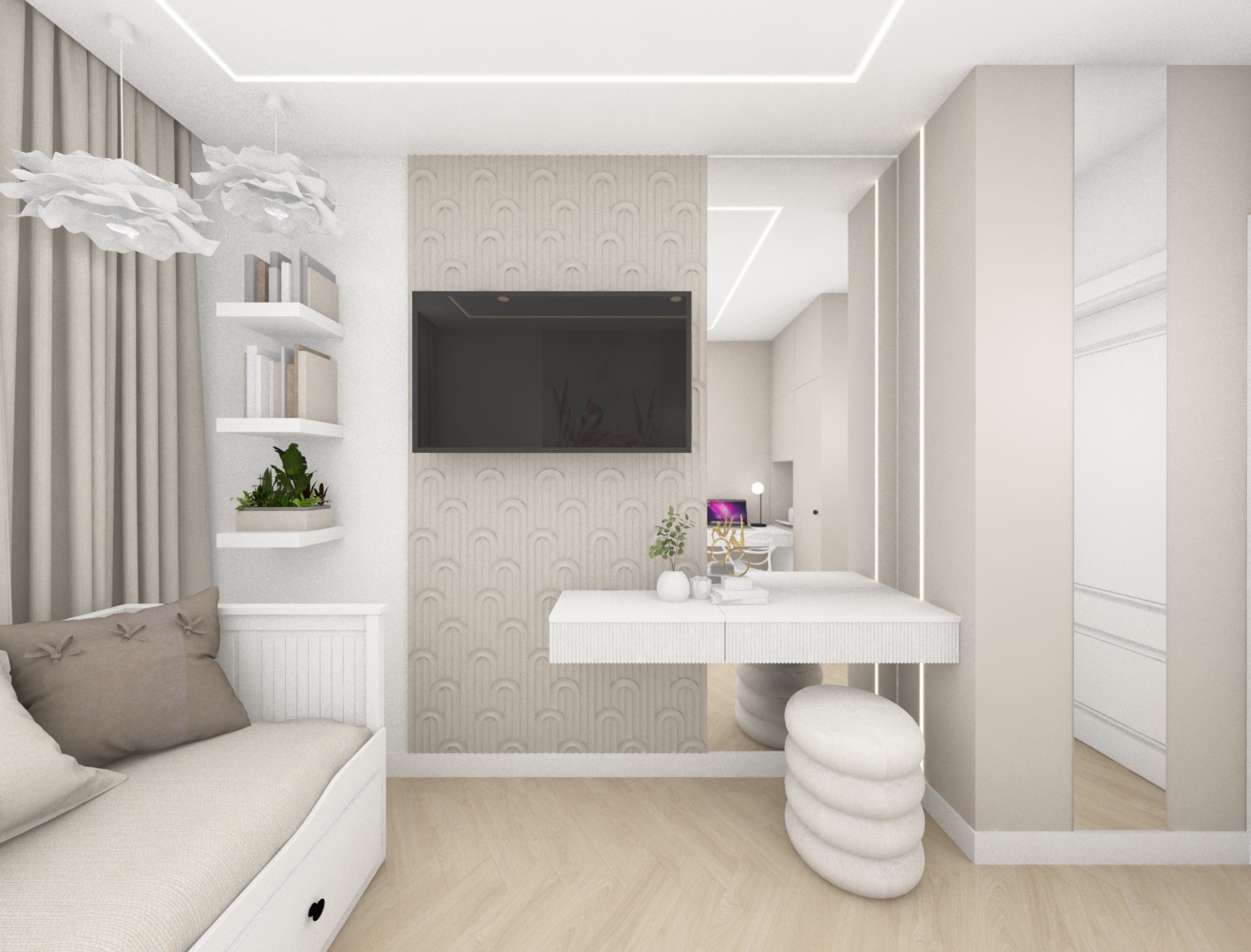 Projekt przestrzeni dziennej, sypialni oraz pokoju dla nastolatki