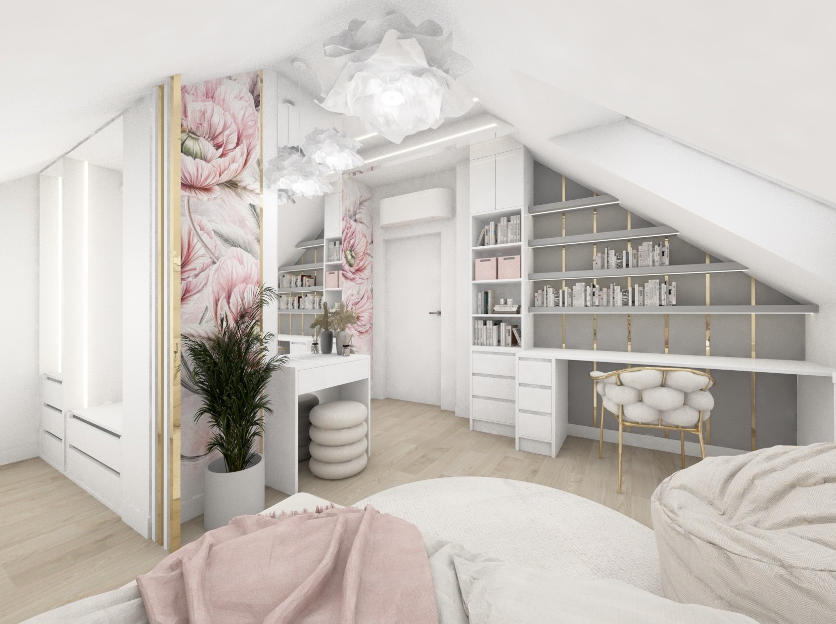Czas na kolejne pomieszczenie i projekt pokoju dla nastolatki z motywem kwiatowym i różem